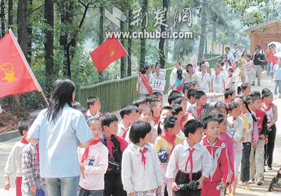 昨日,武漢市洪山區(qū)九峰鄉(xiāng)1700多名小學(xué)生興高采烈地來到武漢九峰鄉(xiāng)森林動(dòng)物園,參加別開生面的慶“六一”活動(dòng)。孩子們在“人·動(dòng)物·未來”百米長卷上簽名,以表示愛綠色家園,創(chuàng)美好明天的決心。這是孩子們游園的情景。