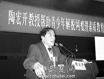 一襲并不時(shí)尚的米色風(fēng)衣,一套普通的深色西裝,中等身材,高額闊臉,面色健康,頭發(fā)略有花白。快人快語,不時(shí)夾雜幾句“Yes”“No”,講到激動(dòng)處有些口吃。這便是“青少年網(wǎng)絡(luò)愛心大使”、59歲的華中師范大學(xué)特聘教授陶宏開。從間接了解,到直接接觸,從報(bào)告會(huì)、座談會(huì),到面對面采訪,連日來,記者就這樣走近陶宏開——