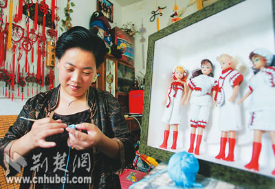 憨態(tài)可掬的企鵝令人喜愛,亭亭玉立的美少女身著靚衣,精美的壁掛配有插花……這些精美的工藝品,都是用毛線編織出來(lái)的。昨日,記者走進(jìn)印迎春的家,被滿室琳瑯滿目的編織品看花了眼。