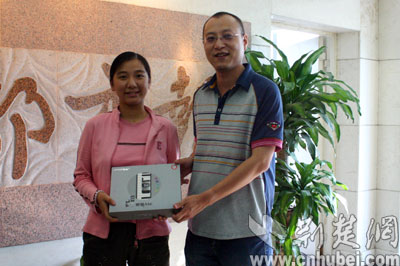 四時整,楚天都市報副總編輯費力和荊楚網(wǎng)副總編輯張劍分別為兩位中獎者頒發(fā)了獎品,并希望他們繼續(xù)關注這次活動,能再次成為最后大獎的幸運讀者。