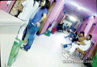 圖一:3樓過(guò)道坐滿濃妝艷抹的女子。