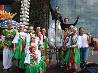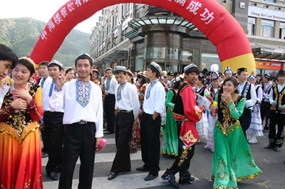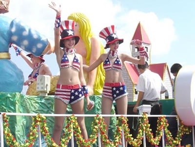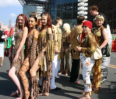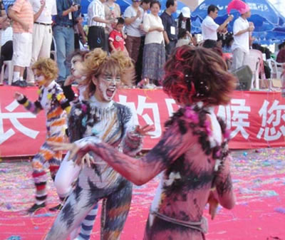 今天上午在新海廣場(chǎng)舉行的第六屆大連狂歡節(jié),更是使歡樂(lè)的海洋里掀起了歡樂(lè)的海潮。來(lái)自國(guó)內(nèi)外的24支狂歡巡游隊(duì)伍,以花團(tuán)錦簇的民族服裝和極度夸張的藝術(shù)手法,演繹了航天、花神、特洛伊木馬、梁山伯與祝英臺(tái)、孔雀仙子、海底動(dòng)物、蝴蝶服飾、阿凡提、醉酒、美人魚、回娘家、貓友、豪華游覽馬車、日月潭傳說(shuō)、堂吉訶德、木偶奇遇、狐假虎威、寶蓮燈、海娃與王子、小櫻丸子、尼爾斯騎鵝記、阿里巴巴、輪滑表演等國(guó)內(nèi)外著名童話,電影故事等。最為耀眼的是以音樂(lè)劇《貓》的扮相出場(chǎng)的表演隊(duì)伍,他們獨(dú)特的表演和造型贏得了在場(chǎng)觀眾最多的歡呼聲?駳g的服裝藝術(shù)巡游,吸引了數(shù)萬(wàn)國(guó)內(nèi)外游客和當(dāng)?shù)孛癖姷挠^賞。