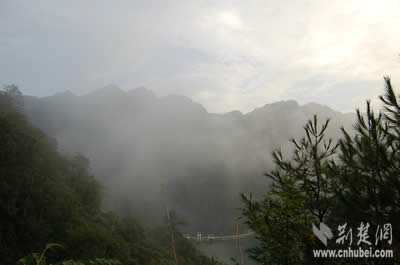 雨后初霽,可惜記者抵達(dá)這里時,趕上主峰的五指上大霧籠罩,所以五指峰的輪廓不是很清晰,大家只能拍攝到云霧中的五指峰。