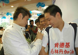 剛剛獲得十運(yùn)會羽毛球男單冠軍、世界排名第一的林丹,繼李小鵬、李婷和孫甜甜之后,榮獲肯德基“體壇群英三號”稱號,并在十運(yùn)會所在地南京上演了一出精彩的肯德基體壇群英會。