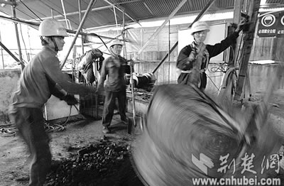 復(fù)雜的地質(zhì)結(jié)構(gòu)讓先進的機械設(shè)備使不上勁,百米深的樁基只能靠人工來完成。本報記者楊平攝