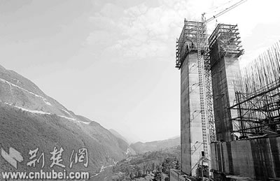 當(dāng)我們小心翼翼爬上馬水河大橋已修至47米高的橋墩時,當(dāng)我們戰(zhàn)戰(zhàn)兢兢走在野三河高懸百米的施工吊橋上時,當(dāng)我們驚嘆于四渡河幽深的峽谷時,當(dāng)我們走進艱難掘進的野三關(guān)隧道時,橋的險,隧的難,如一幅色調(diào)凝重而恢宏的畫卷,一一展現(xiàn)眼前。
