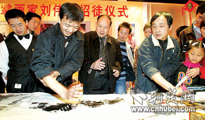 昨日上午10點(diǎn)半,武昌中南路上一家酒店迎來(lái)了30名特殊的客人。他們遠(yuǎn)的來(lái)自黃岡、荊門(mén),特地趕來(lái)參加江城掌畫(huà)奇人劉偉新的現(xiàn)場(chǎng)招徒會(huì)。