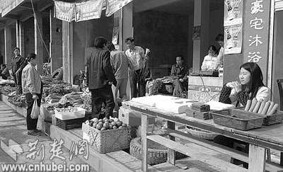 村民們確保為建設(shè)者們提供充足的鮮肉和蔬菜供應(yīng)。本報記者楊平攝