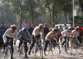 荊楚網(wǎng)消息(記者吳彬彬)2005湖北省第一屆大學(xué)生自行車聯(lián)賽今天上午在華中科技大學(xué)拉開帷幕,共有來自華中科技大學(xué)、中國地質(zhì)大學(xué)(武漢)、武漢大學(xué)、武漢理工大學(xué)、華中農(nóng)業(yè)大學(xué)、湖北工業(yè)大學(xué)和湖北經(jīng)濟學(xué)院的23支隊伍前來參賽。