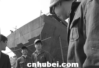 在武漢長(zhǎng)江和漢江的江灘上,一些沒有造船資質(zhì)證書的私人船東,招募了一批來自河南的農(nóng)民工,建造了數(shù)十條貨輪。這些農(nóng)民工收入低微,生活和工作條件都很艱苦。
