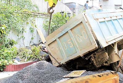 荊楚網(楚天都市報) (記者 劉俊華 實習生 蘆何秋 記者 宋枕濤) 昨日下午2時許,漢口球場新村一校園刷黑施工現(xiàn)場,一輛滿載瀝青的貨車軋塌路基發(fā)生側歪,車廂內瀝青傾瀉而下,埋住了一位指揮倒車的農民工。幾分鐘后,這位工人被工友們扒出來,因瀝青溫度太高,他只揮動了兩下手,就再也沒能醒來……