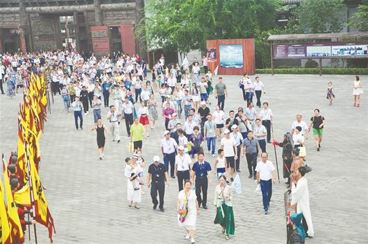 圖為與會代表參觀正在創(chuàng)建國家5A級旅游景區(qū)的三國赤壁古戰(zhàn)場景區(qū)
