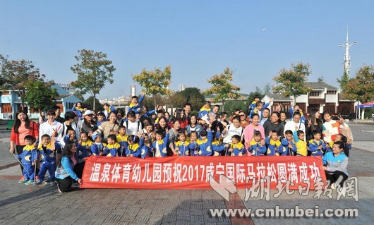 湖北日?qǐng)?bào)網(wǎng)訊(全媒體記者張文龍、通訊員盤(pán)麗娟)28日,2017金盛蘭杯咸寧國(guó)際溫泉馬拉松公益親子徒步活動(dòng)在咸寧十六潭公園舉行?;顒?dòng)主題為“潔凈咸寧 向愛(ài)奔跑”,吸引了50個(gè)家庭約125人參加,其中年齡最小者僅4歲。