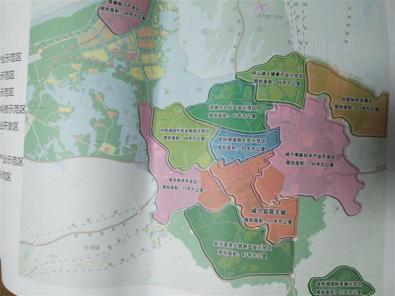 十區(qū):梓山湖大健康產(chǎn)業(yè)示范區(qū)、濱湖大文化產(chǎn)業(yè)示范區(qū)、大洲湖湖濕地生態(tài)示范區(qū)、向陽(yáng)湖現(xiàn)代農(nóng)業(yè)科技示范區(qū)、咸寧高新技術(shù)產(chǎn)業(yè)開(kāi)發(fā)區(qū)、咸安經(jīng)濟(jì)開(kāi)發(fā)區(qū)、森林溫泉大旅游產(chǎn)業(yè)示范區(qū)、金桂湖國(guó)際低碳示范區(qū)、咸嘉臨江產(chǎn)業(yè)區(qū)、武咸協(xié)同發(fā)展區(qū)。