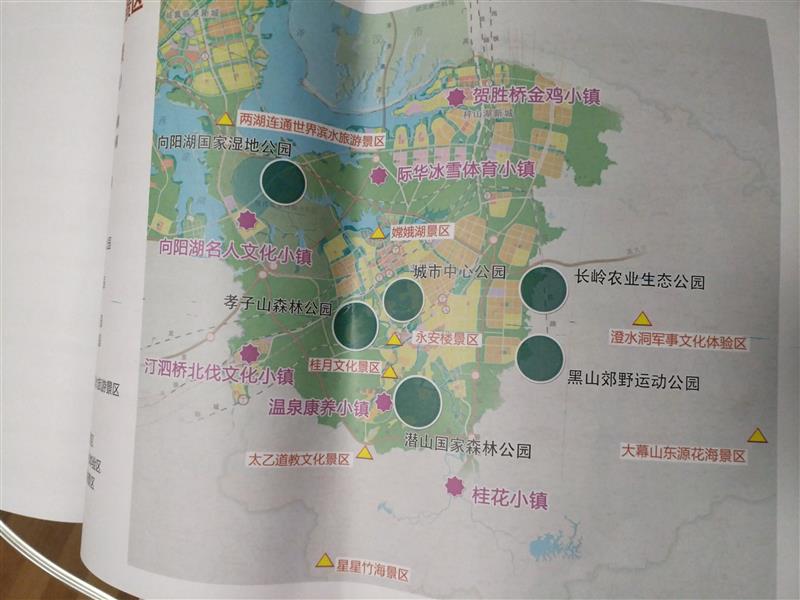 六園:向陽(yáng)湖國(guó)家濕地公園、孝子山森林公園、潛山國(guó)家森林公園、城市中心公園、黑山郊野運(yùn)動(dòng)公園、長(zhǎng)嶺農(nóng)業(yè)生態(tài)公園。