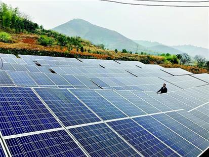 楚天都市報(bào)訊 圖為:一排排光伏板整齊安裝在山坡上