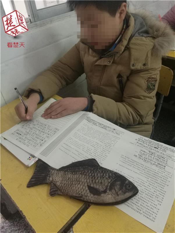 楚天都市報1月24日訊(記者 賀?。┮粋€穿著黃色衣服的學生正在語文試卷上奮力書寫,壓在試卷上的東西卻亮了:這不是一條鯽魚嗎?幾乎所有人看到這張照片的第一反應就是:這孩子想“咸魚翻身”嗎?今晚,一張照片在不少人的朋友圈刷了屏。