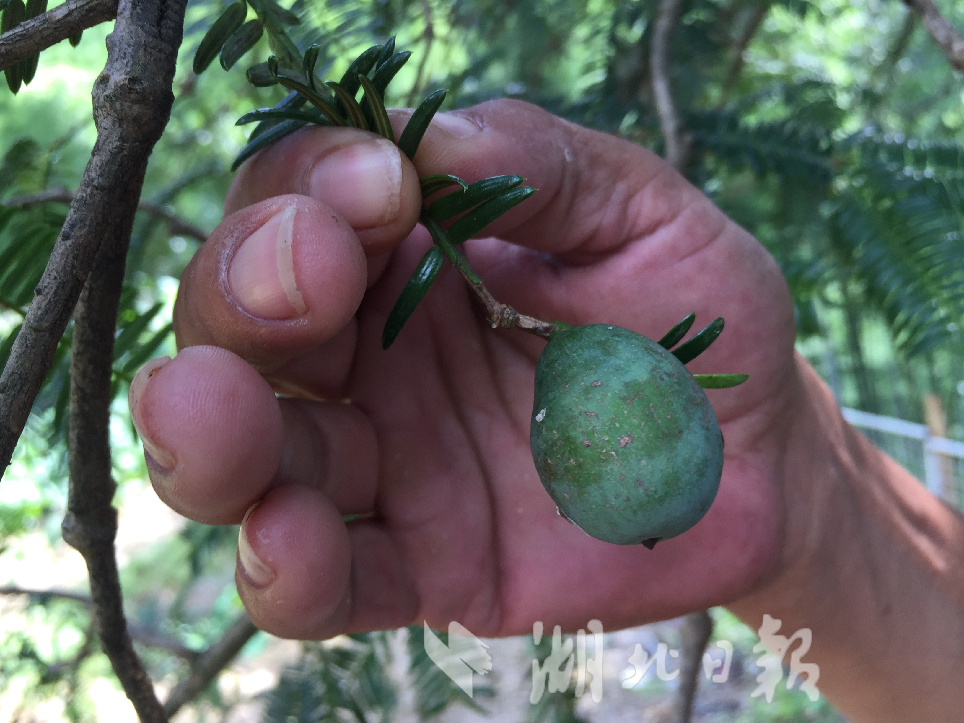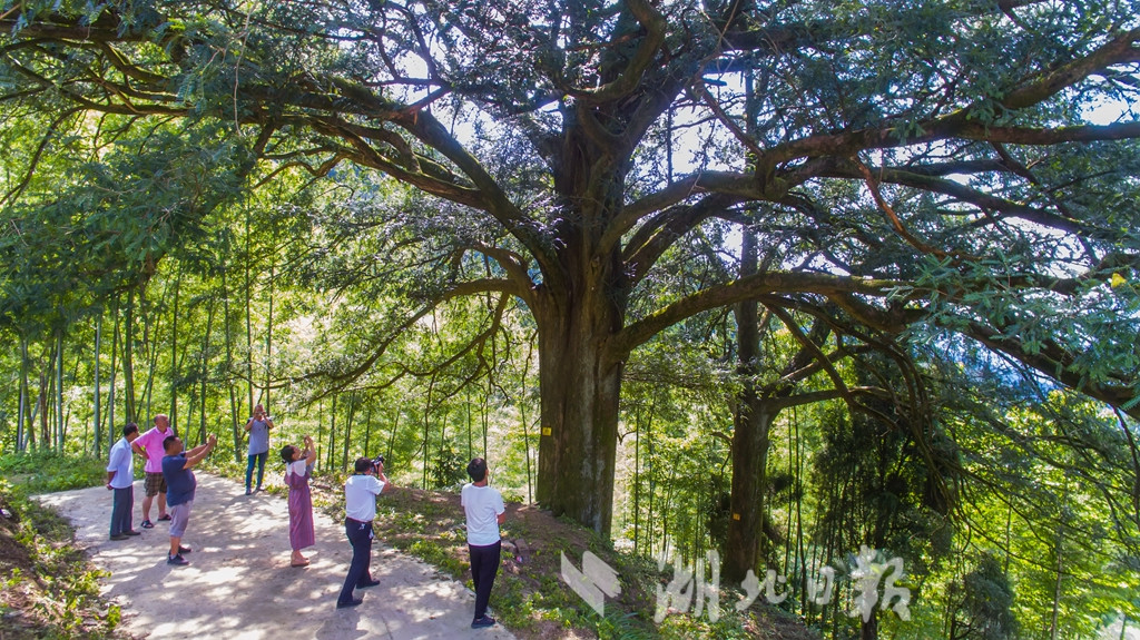 湖北日報訊(記者 陳勇 通訊員汪佳、黎志遠)7月16日,在崇陽縣港口鄉(xiāng)大東港村,兩棵古香榧樹歷經(jīng)千年仍枝繁葉茂、碩果累累,令游客驚嘆不已。這棵雌性香榧樹高25米,樹冠面積約有650平方米,胸圍4.9米,估測樹齡在980年至1200年之間。香榧,紅豆杉科,中國原產(chǎn)樹種,是世界上稀有的經(jīng)濟樹種。崇陽縣林業(yè)部門在幕阜山南坡發(fā)現(xiàn)這兩株古香榧樹,認為有很高的科研和經(jīng)濟價值,列入一級保護的古樹名單。