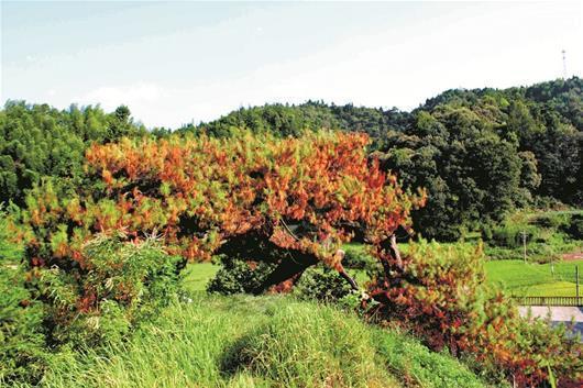 村民們介紹,今年8月8日左右,他們出門干活時(shí),抬頭發(fā)現(xiàn)這棵古樹(shù)有部分針葉發(fā)黃。村民感覺(jué)不對(duì),立即找到村支書(shū)反映,村支書(shū)迅速上報(bào)九宮山鎮(zhèn)政府及林業(yè)部門。鎮(zhèn)政府高度重視,鎮(zhèn)林業(yè)站站長(zhǎng)成獻(xiàn)忠緊急趕往現(xiàn)場(chǎng)查看后,向縣森防站求助。