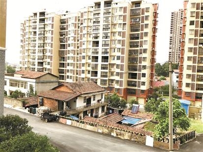 小區(qū)邊坡下有一排民房,一座四合院傳出豬的叫聲,這就是養(yǎng)豬場的所在。院外放著幾只潲水桶,散發(fā)出酸臭味。養(yǎng)豬場另一邊,是城東雅園小區(qū)。