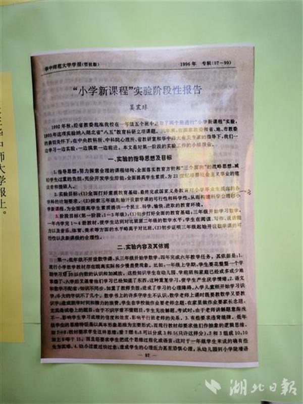 1992年秋,時(shí)任赤壁市實(shí)驗(yàn)小學(xué)校長的吳震球從一年級(jí)五個(gè)班中選取兩個(gè)班進(jìn)行“小學(xué)新課程”實(shí)驗(yàn),從三年級(jí)開始學(xué)數(shù)學(xué),此項(xiàng)實(shí)驗(yàn)還曾納入我省“八五”教育科研立項(xiàng)課題。1998年小學(xué)畢業(yè)考試,實(shí)驗(yàn)班學(xué)生數(shù)學(xué)平均分高于普通班3-5分。但由于人事變動(dòng),當(dāng)年的實(shí)驗(yàn)并未結(jié)題,此項(xiàng)實(shí)驗(yàn)也無疾而終。