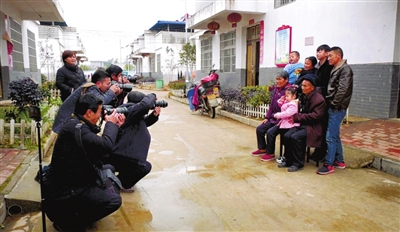 省書畫家小分隊走進(jìn)村民家中送春聯(lián)、送“?!弊郑皇z協(xié)小分隊為當(dāng)?shù)卮迕衽臄z全家福;今古傳奇小分隊給當(dāng)?shù)卮迕褓浰推诳瘓D書;藝術(shù)家代表們還與崇陽民間文藝團(tuán)體進(jìn)行交流,讓文化藝術(shù)的種子在貧困地區(qū)落地生根,開花結(jié)果。