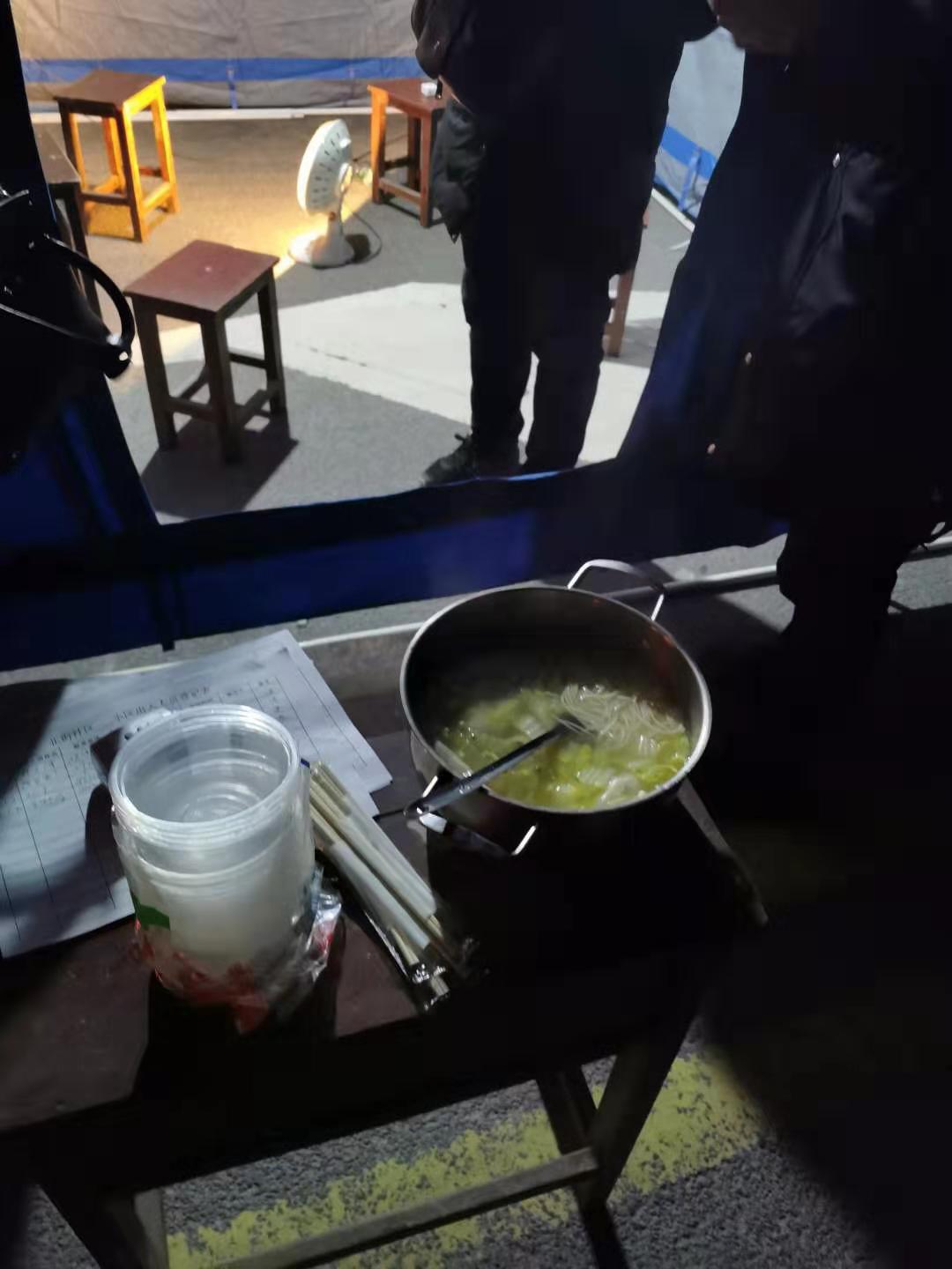 這是一位干警的妻子為他送來的面條,家里沒什么菜了,只放了幾片白菜葉子,但在這寒冷的夜里卻勝過一切珍饈。通宵達旦地值守,深入一線的排查接觸,家人的理解和支持是他們背后強大的力量,這份力量讓他們沒有后顧之憂,只管向前,再向前!
