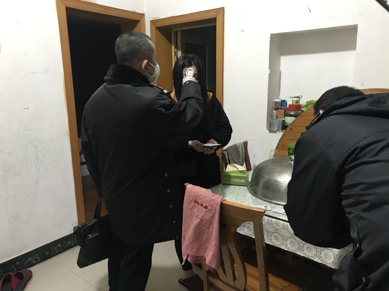 “吱呀”一聲,穿著睡衣的張女士打開了門,門口站著兩位戴著口罩,穿著制服,掛著工作牌的法院干警。“請問您家里有沒有武漢返鄉(xiāng)人員呢?我們來了解情況,也順便給您和家人量量體溫?!?/p>