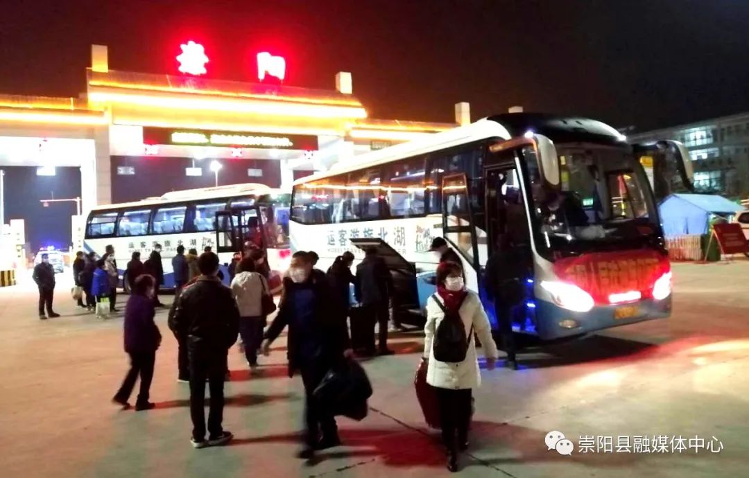 當晚,載著32名返崗員工的2臺大巴從湖南岳陽東站起程,21點10分順利返回崇陽,這些返崗員工在采取相應(yīng)防疫措施后將陸續(xù)走上復工崗位。