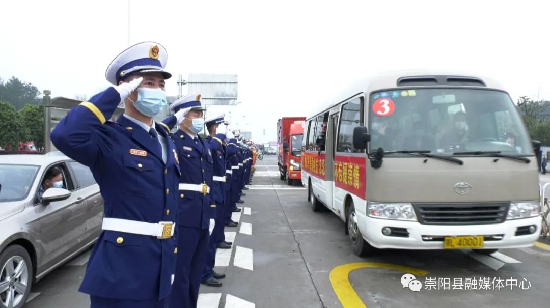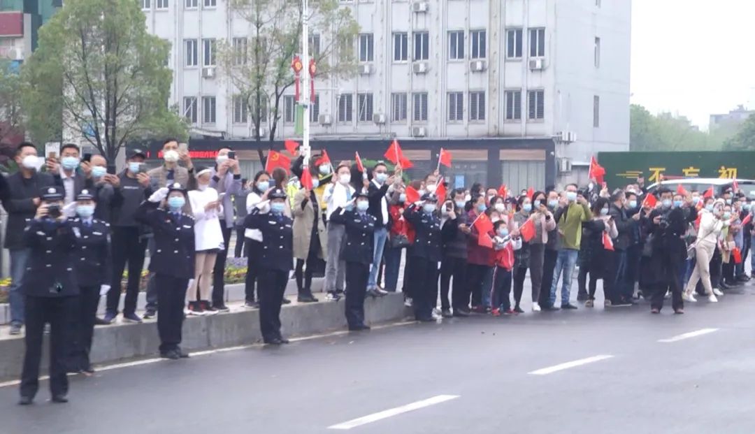 沿途,“千里逆行助崇陽 平平安安回家鄉(xiāng)”“風(fēng)雨與共 守望相助 攜手奮戰(zhàn) 感恩有你” “云南援崇醫(yī)療隊(duì)醫(yī)護(hù)人員恩情 崇陽人民永久于心”等紅色條幅分外鮮艷,街道兩旁的群眾揮舞著國(guó)旗,為支援崇陽的云南醫(yī)療隊(duì)送別。人群中,“謝謝白衣天使”“英雄一路順風(fēng)”的聲浪此起彼伏,群眾用最真誠(chéng)樸實(shí)的話語表達(dá)了對(duì)白衣天使們由衷地感謝。