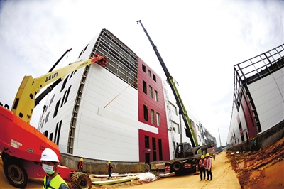 25日,赤壁市維達(dá)力實(shí)業(yè)(三期)項(xiàng)目正抓緊建設(shè)。該項(xiàng)目位于中伙鋪工業(yè)園,總投資35億元,占地面積163畝,主要生產(chǎn)微晶玻璃、柔性屏,是赤壁市重點(diǎn)在建項(xiàng)目之一。目前正在進(jìn)行廠房墻面建設(shè)和設(shè)備安裝調(diào)試,預(yù)計(jì)7月全面建成投產(chǎn)。 咸寧日?qǐng)?bào)全媒體記者 袁燦 攝