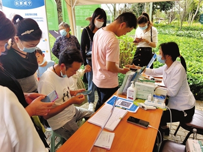 與此同時(shí),在官橋八組田野鄉(xiāng)村公園開(kāi)心農(nóng)場(chǎng)景區(qū)門前,筆者看到檢票處排起了長(zhǎng)隊(duì),游客們正有序地核銷預(yù)約二維碼、測(cè)溫、登記完后陸續(xù)進(jìn)入景區(qū)。景區(qū)內(nèi)隨處可見(jiàn)拍照合影、嬉戲玩耍的身影,洋溢著一派歡聲笑語(yǔ)的熱鬧景象。
