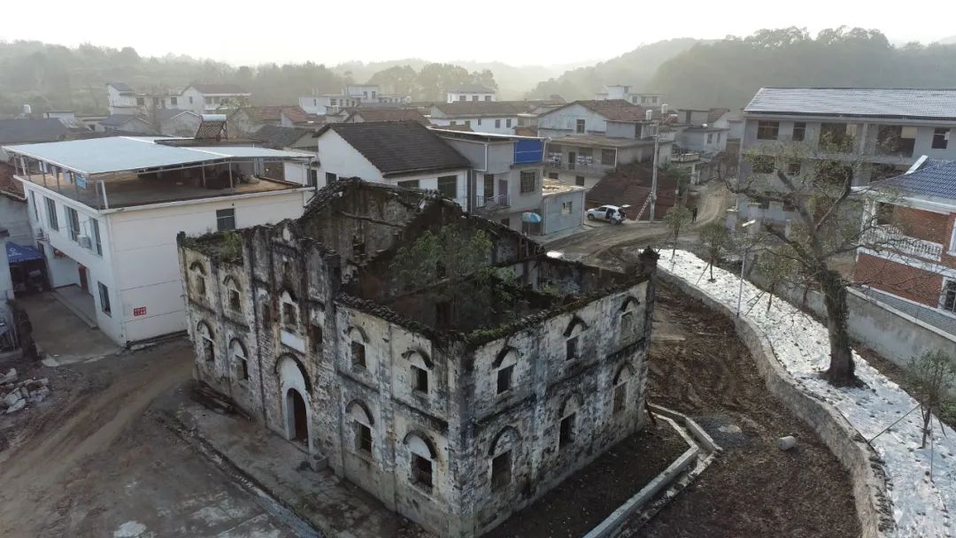不過,在王家畈村口依然存留著一所民國學(xué)堂建筑,雖已殘損,但墻體保存尚好,于寂然中屹立。