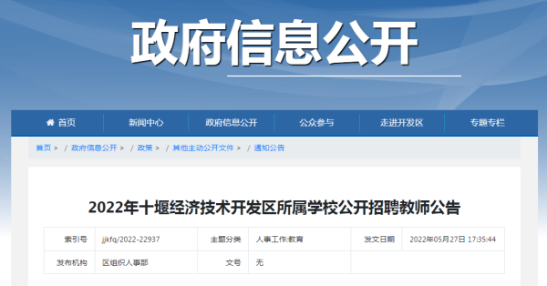 具體招聘事宜由十堰經(jīng)濟(jì)技術(shù)開發(fā)區(qū)組織人事部、十堰經(jīng)濟(jì)技術(shù)開發(fā)區(qū)文教衛(wèi)局負(fù)責(zé)解釋。