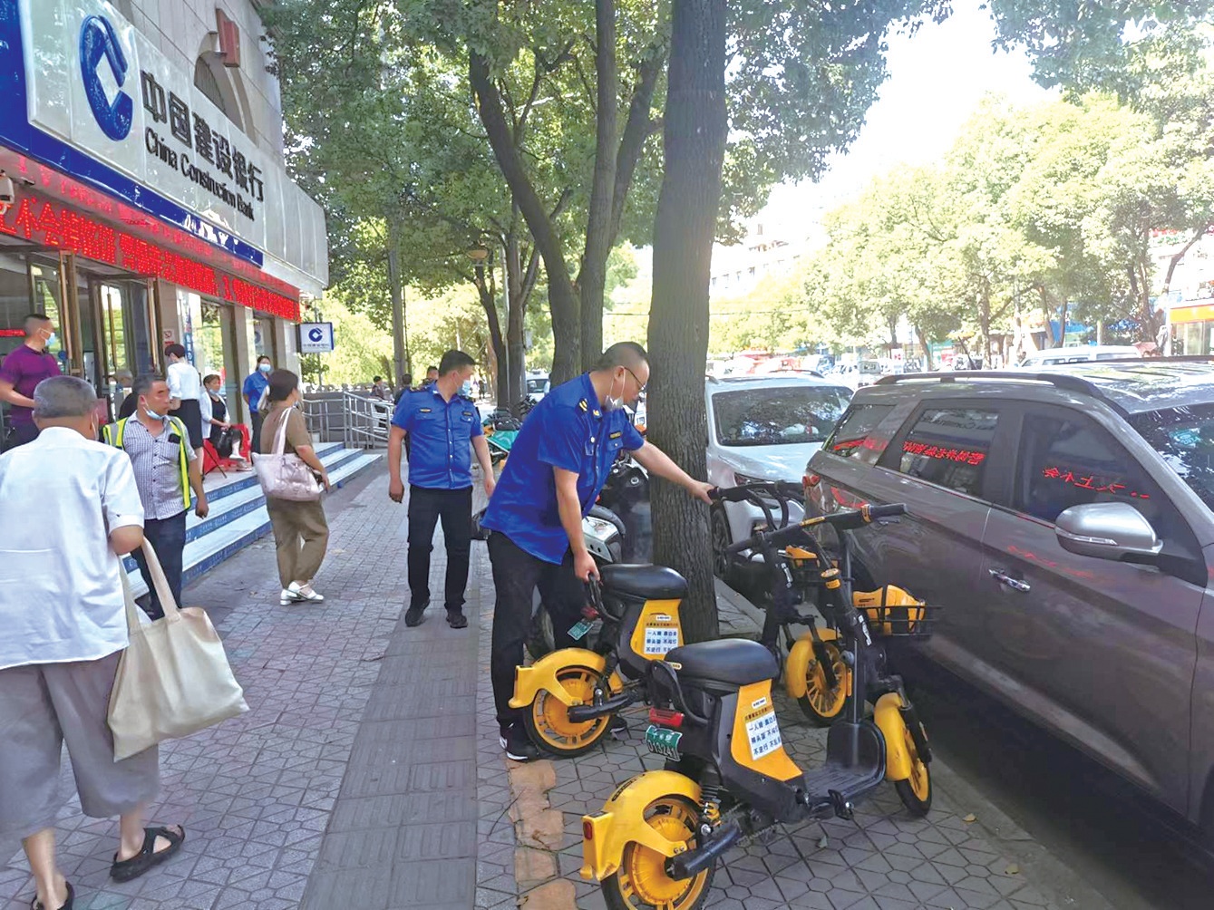 余章偉介紹,共享單車停放問題是街辦綜合治理中心關(guān)注的重點內(nèi)容,通過日常巡查,他們基本上能夠準確把握常見的亂停亂放點位,有針對性地重點關(guān)注。一般來說,如果發(fā)現(xiàn)少量的亂停車輛,他們會自己擺放到合適的位置,但亂停車輛較多時,他們就會拍照發(fā)到“共享單車管理群”,各共享單車企業(yè)的工作人員都在群里,看到消息后,他們會迅速到現(xiàn)場進行整理。
