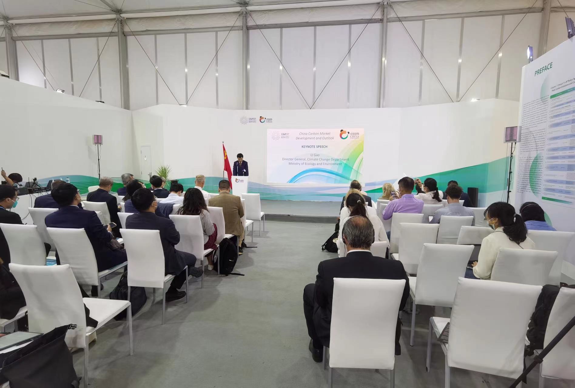 當?shù)貢r間11月15日,由生態(tài)環(huán)境部氣候司主辦,國家應(yīng)對氣候變化戰(zhàn)略研究和國際合作中心和美國環(huán)保協(xié)會聯(lián)合承辦的“中國碳市場發(fā)展與展望邊會”在埃及《聯(lián)合國氣候變化框架公約》第二十七次締約方大會(COP27)中國角舉行。中碳登黨委書記、董事長陳志祥受邀擔任邊會主旨演講主持人,并與國際應(yīng)對氣候變化、綠色能源、環(huán)境保護等領(lǐng)域機構(gòu)代表和專家進行圓桌討論。