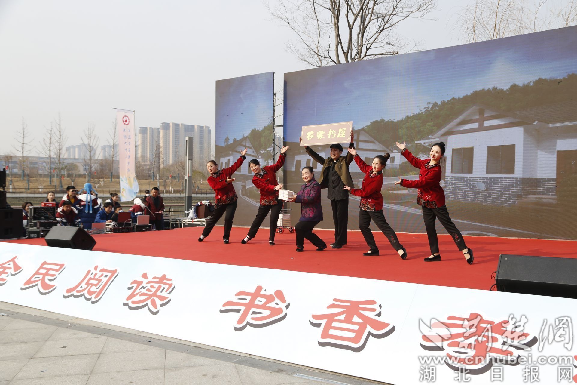 在書屋不遠(yuǎn)處的老澴河岸邊,一場(chǎng)別開生面的文藝宣講活動(dòng)精彩開演。舞蹈《孝感是我家》展現(xiàn)了廣大孝感人民為建設(shè)美好孝感家園的良好精神面貌,小戲小品《改書屋》講述了群眾把麻將室改成農(nóng)家書屋的生動(dòng)故事,詩朗誦《家風(fēng)頌》、快板舞《二十大精神放光芒》等節(jié)目引得臺(tái)下觀眾陣陣喝彩。