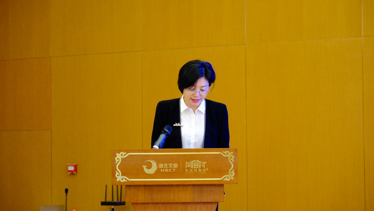 在景區(qū)問(wèn)梅山莊宴會(huì)廳,采風(fēng)團(tuán)參加了“東山問(wèn)梅村旅游推介會(huì)”,黃梅縣文化和旅游局局長(zhǎng)張惠致歡迎詞,介紹了黃梅縣人文特色和景區(qū)資源。