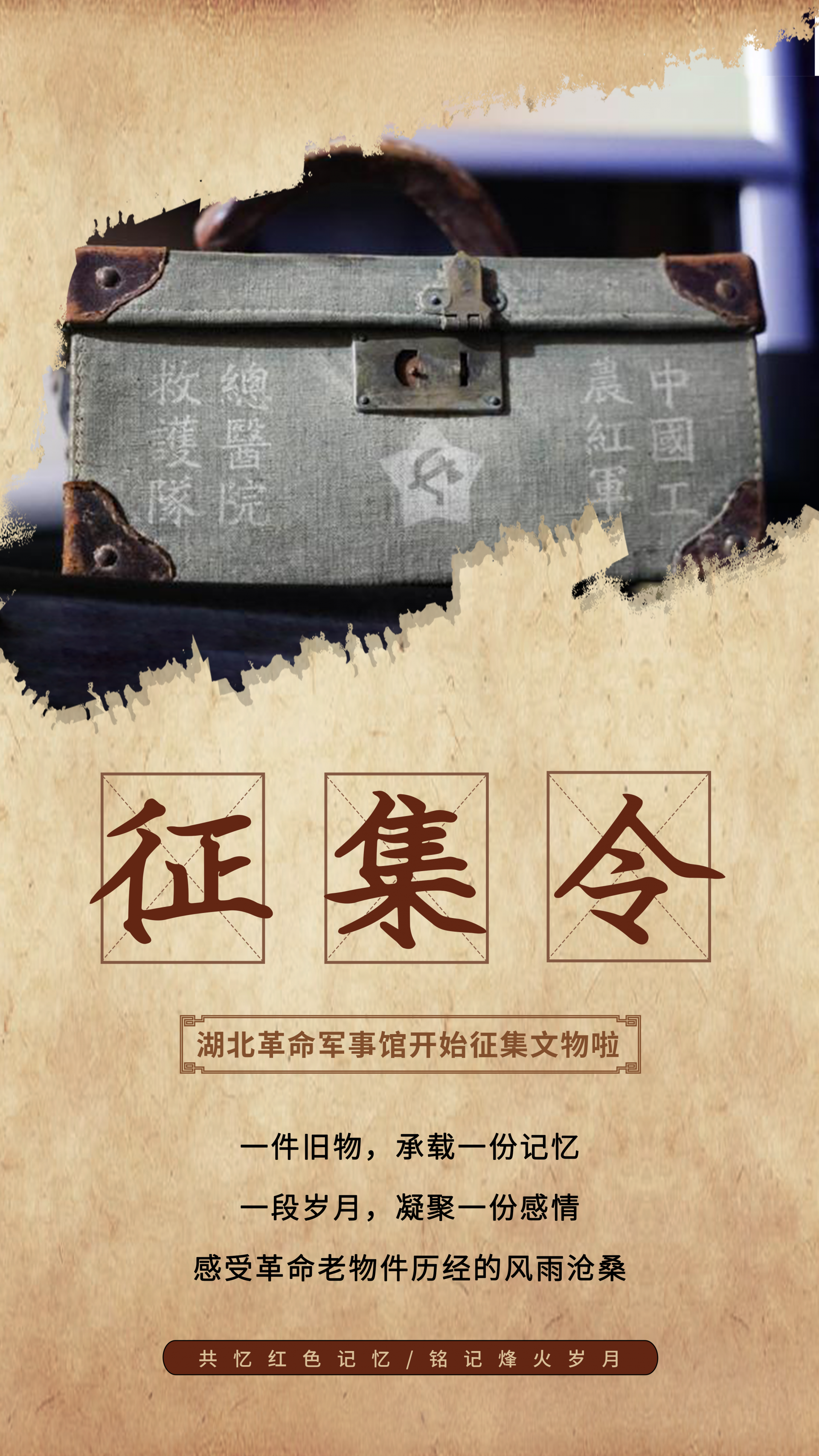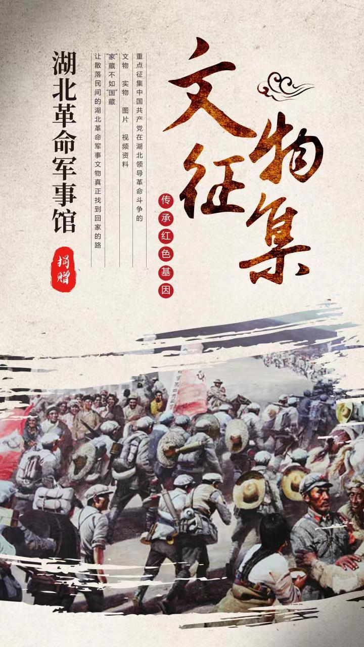 重點征集新民主主義革命時期中國共產(chǎn)黨在湖北領(lǐng)導(dǎo)革命斗爭、新中國成立后駐鄂部隊履行使命任務(wù)相關(guān)的文物(實物)史料及線索。