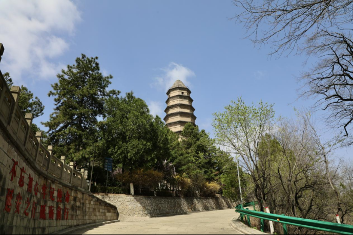 寶塔山古時候稱豐林山,北宋時改名為嘉陵山,又因山上有寶塔一座,所以被習(xí)慣性地稱為寶塔山。寶塔山海拔1135.5米,為周圍的群山之冠,是革命圣地延安的標(biāo)志和象征,寶塔山融歷史文物和革命遺址為一脈,集人文景觀和自然景觀為一體,是全國愛國主義、革命傳統(tǒng)和延安精神三大教育基地之一。