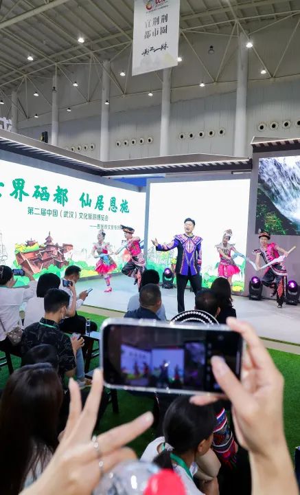 在恩施市專場推介會上,精彩的文藝演出吸引了眾多參展嘉賓駐足,《恩施民歌聯(lián)唱》、表演唱《六口茶》等極具土家特色的文藝節(jié)目,現(xiàn)場為大家奉上的恩施玉露,充分展示了恩施獨特的民族風(fēng)情;恩施市文旅推介官圍繞“山水之戀、人文原鄉(xiāng)、秘境相逢、遠方家園”四個篇章對恩施文旅資源進行了全方位推介;現(xiàn)場有獎互動吸引,大家踴躍參與,派送出了由恩施大峽谷、梭布埡石林、恩施土司城、恩施鹿院坪、恩施龍麟宮等景區(qū)攜手提供的文旅千元大禮包。