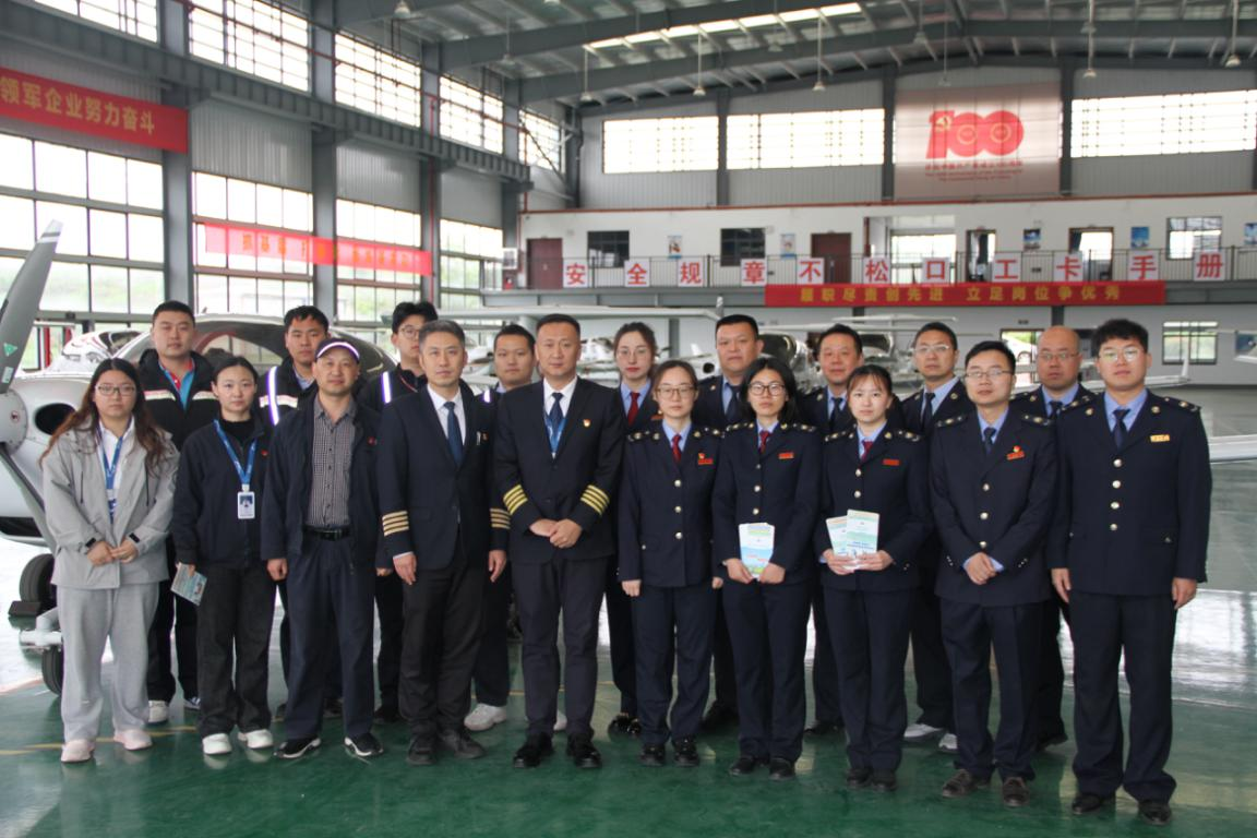 圖為稅務(wù)干部參觀湖北龍昊航校機(jī)庫