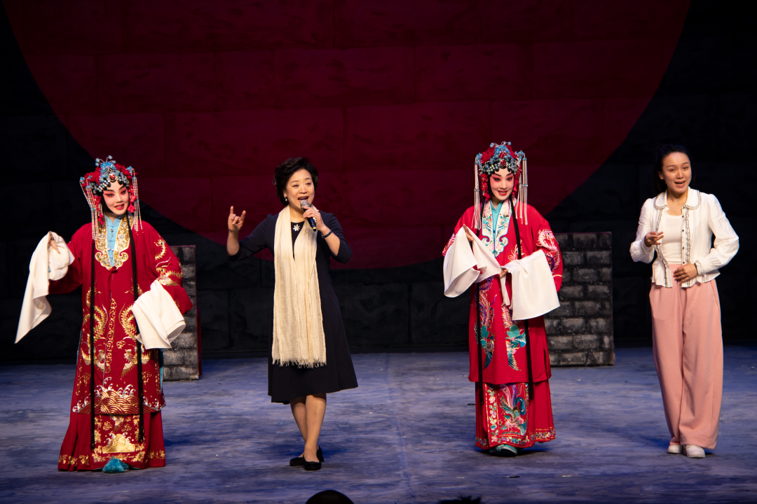 返場李院長攜三位學(xué)生演唱程派《穆桂英再掛帥》片段(左一為李若溪、右二為浦樹、右一為王致賢)