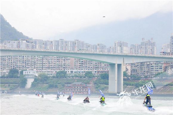 來(lái)自全國(guó)各地的參賽選手騎著摩托艇入場(chǎng)。華龍網(wǎng)-新重慶客戶端 黃歡 攝