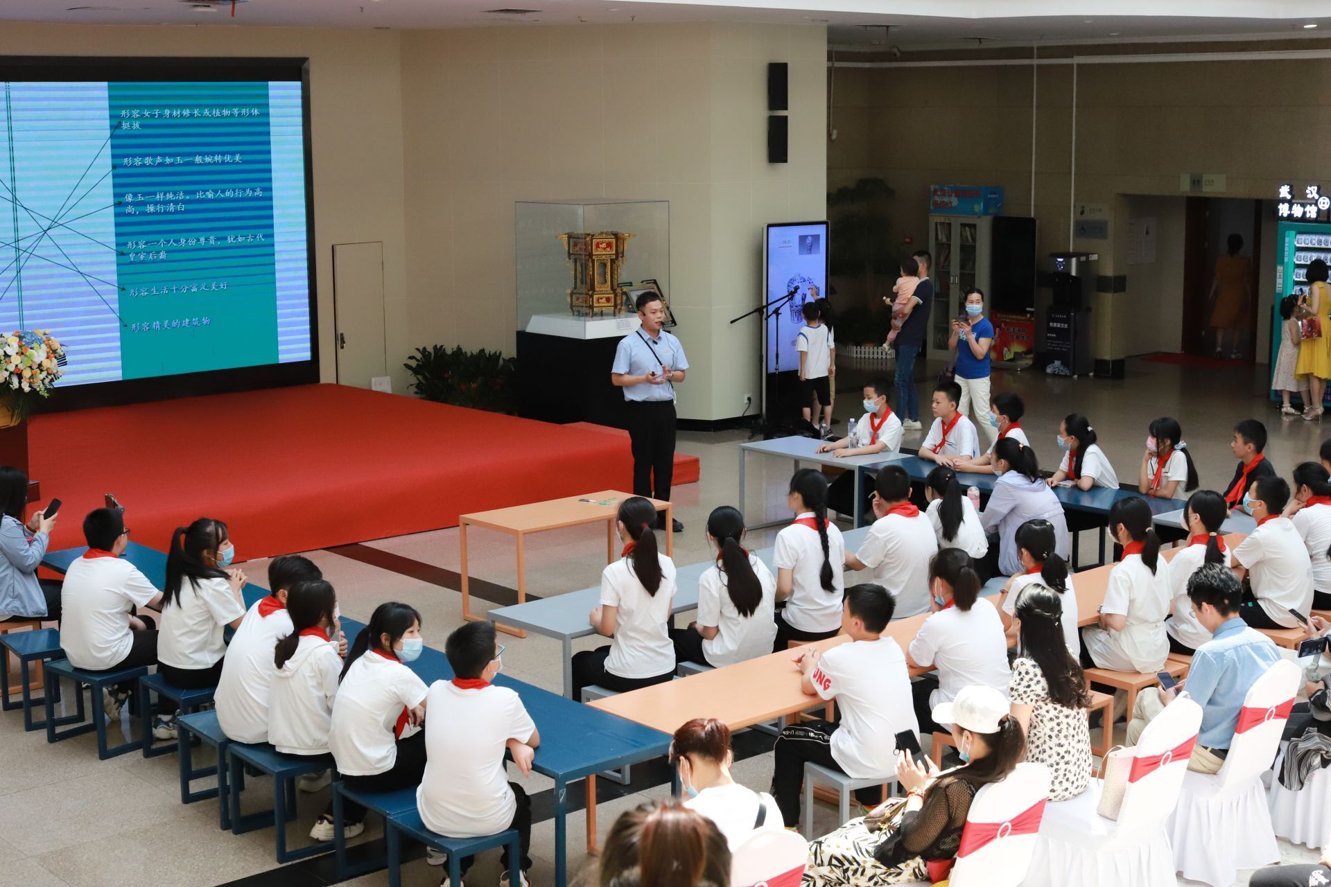 “考古體驗空間”公眾考古體驗活動是本次主場活動的一大亮點,將黃陂張黃家灣墓地92號墓整體“打包”搬遷至室內(nèi),現(xiàn)場展示考古清理過程,洛陽鏟、手鏟、全站儀、RTK等考古工具和地層學(xué)、類型學(xué)等考古知識圖片,讓觀眾近距離感受真實的田野考古發(fā)掘現(xiàn)場,體驗考古學(xué)魅力?!拔幕妥匀贿z產(chǎn)日 博物館里‘玉’見美好”活動以武漢博物館館藏出土玉器為載體,深入闡釋中國玉文化,傳承弘揚(yáng)中華優(yōu)秀傳統(tǒng)文化。在活動現(xiàn)場,鄔家墩小學(xué)的學(xué)生們化身“考古迷”,仔細(xì)觀察活動中展出的文物、考古工具,認(rèn)真聆聽考古工作人員講解展覽和考古知識,紛紛表示對武漢歷史有了更深地認(rèn)識,特別佩服古人的智慧,對考古產(chǎn)生了更加濃厚的興趣。