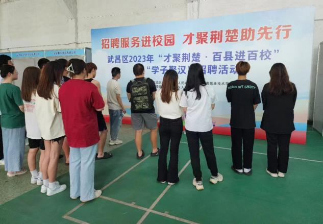為響應(yīng)省人社廳2023年高校畢業(yè)生等青年就業(yè)創(chuàng)業(yè)十項行動,全力支持高校畢業(yè)生留鄂來鄂就業(yè)的號召,“才聚荊楚·百縣進百?!痹谖洳齾^(qū)相關(guān)職能部門的推進下有序進行。武昌作為高校畢業(yè)生就業(yè)意愿較高的地區(qū),一直受到學(xué)子的關(guān)注。本次招聘活動吸引了眾多求職學(xué)子前來參加。