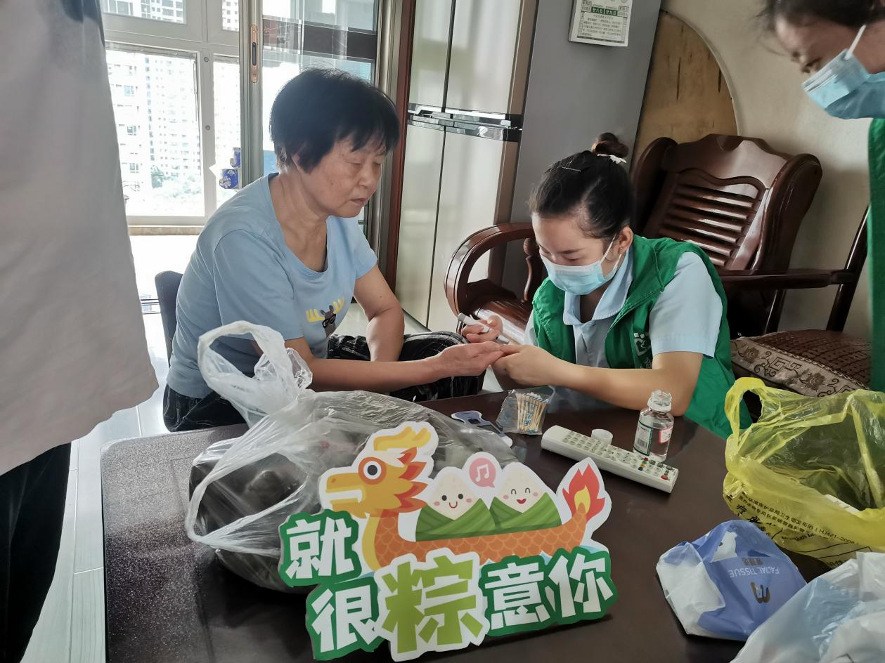 活動(dòng)結(jié)束后,社區(qū)工作人員及志愿者一起將“廉粽”送給了空巢老人、殘疾困難群眾,并由梨園街康益壽助老服務(wù)中心的家庭醫(yī)生團(tuán)隊(duì)上門為老人進(jìn)行血壓、血糖檢測(cè),讓他們一同感受社區(qū)這個(gè)大家庭的溫暖。