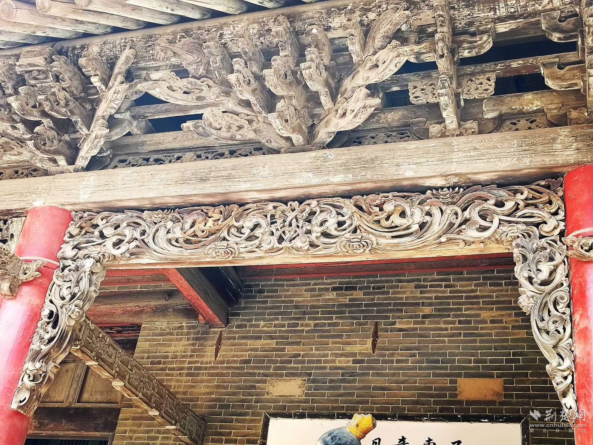 重檐歇山式建筑,上下三層,翬飛斗拱,層層疊立;環(huán)樓上下,均有木、石雕刻;戧脊上飾以人物走獸,雕工精細,玲瓏奇觀。
