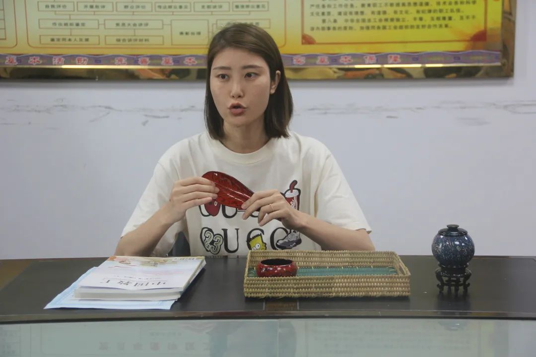 舞陽(yáng)壩街道陳婧介紹自己制作的漆器