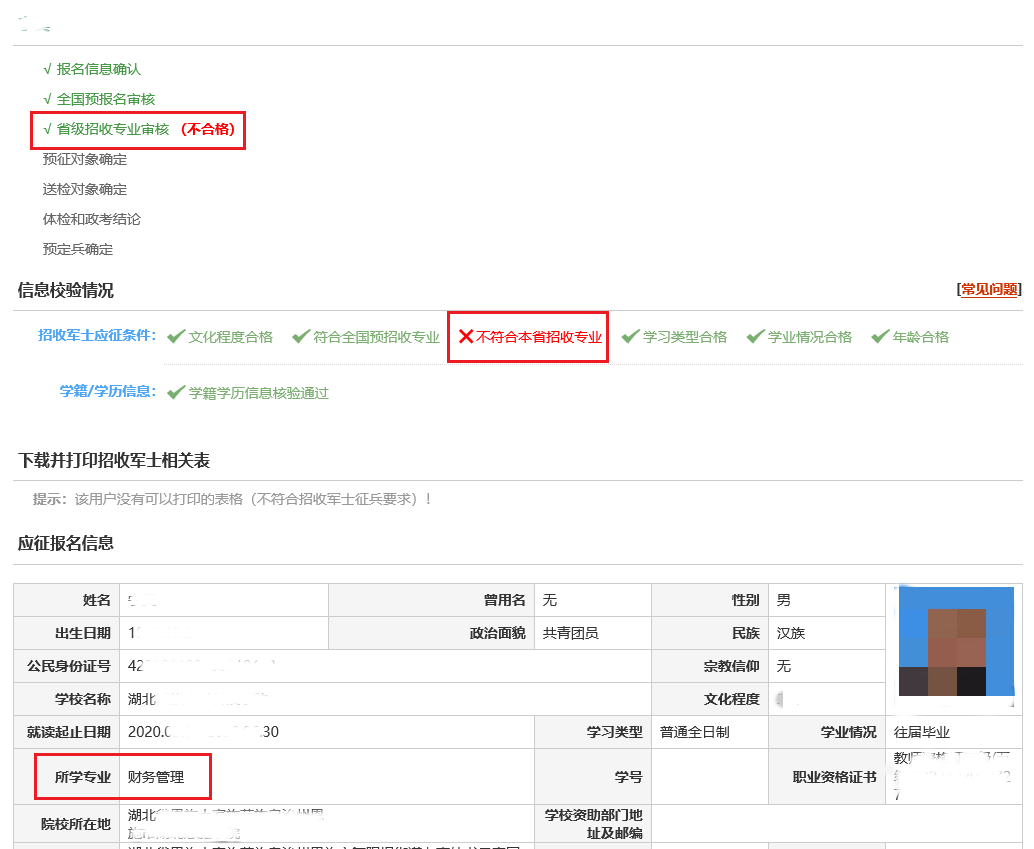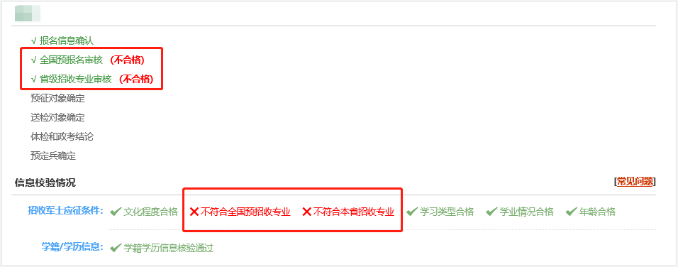 不符合招收專業(yè)這種情況分為兩類,第一類是極少數(shù)青年預報名時就已經不符合全國招收專業(yè):